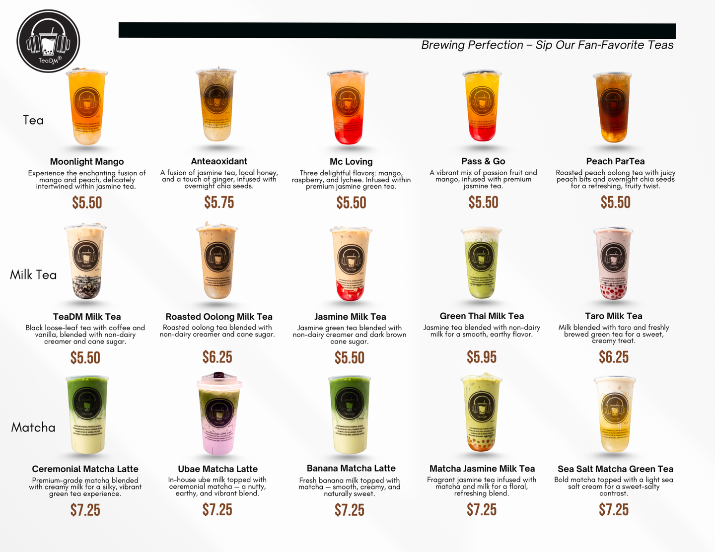 + 17oz TeaDM milk tea sweetened with dark brown cane sugar