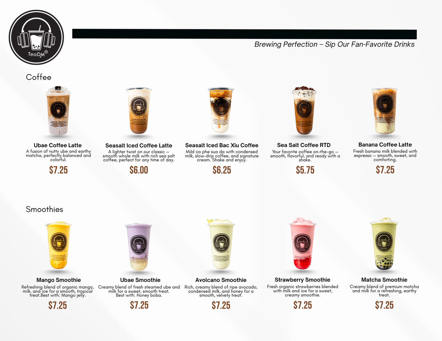 TeaDM signature milk tea topped with Vietnamese iced coffee.
